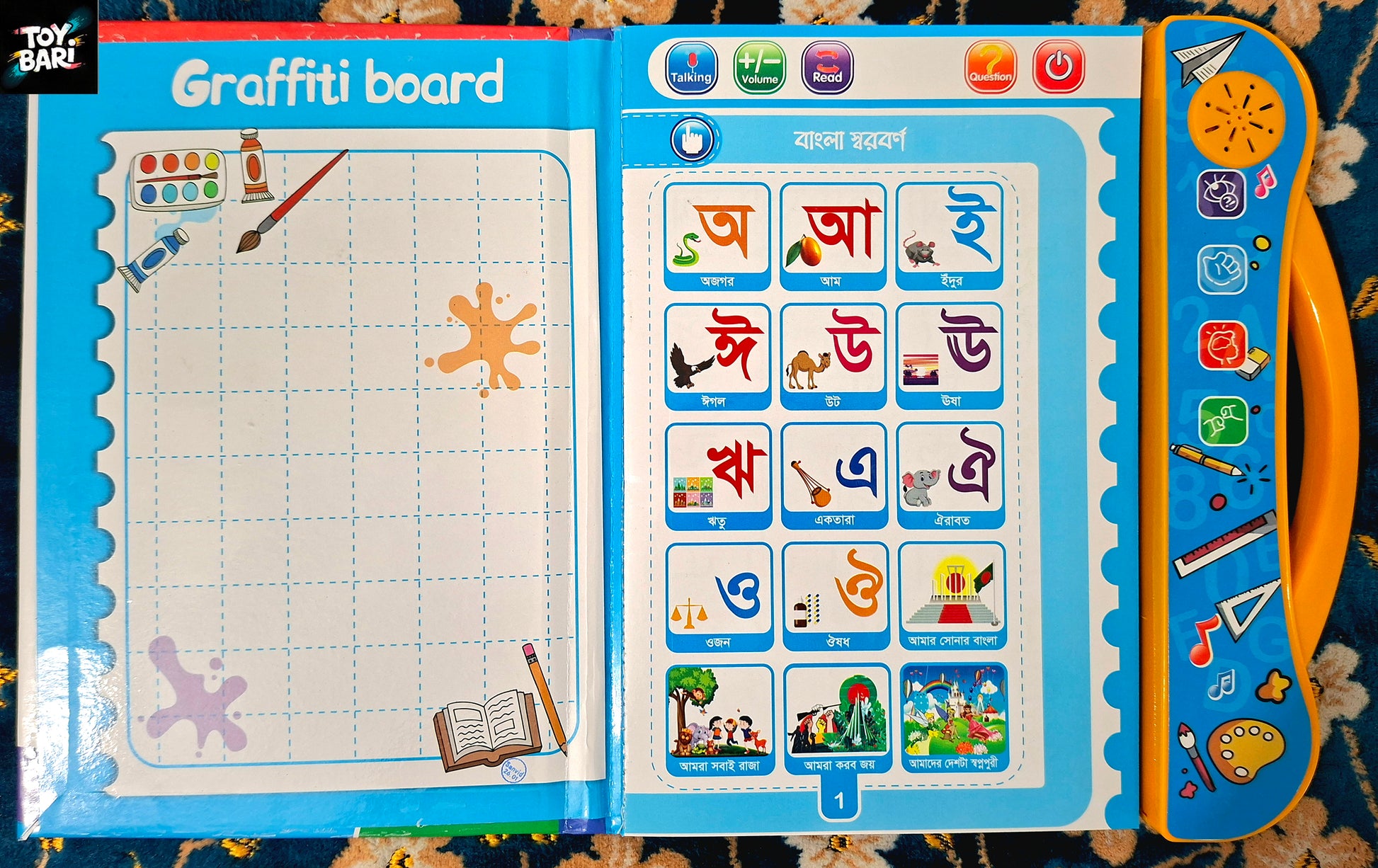 বইটি টাচ-ভিত্তিক অডিও, রেকর্ডিং ফিচার ও ম্যাজিক ওয়াটার বুকের মাধ্যমে শিশুদের খেলার মধ্যেই শেখার অভ্যাস তৈরি করে। এটি শিশুদের মোবাইল থেকে দূরে রেখে শেখার প্রতি আগ্রহ বাড়াতে বিশেষভাবে ডিজাইন করা হয়েছে।